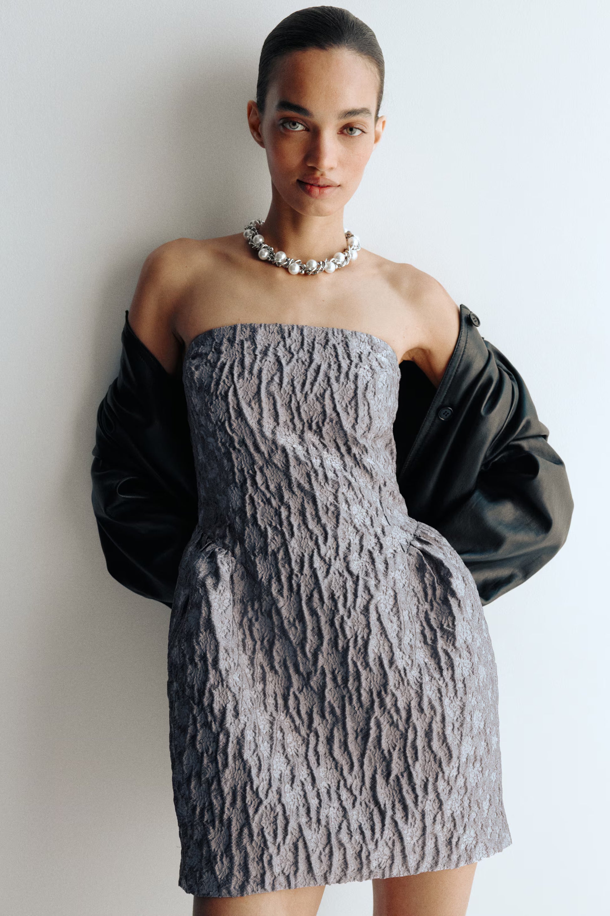 At the center sits a hand-polished pearl-inspired ring, designed to gather the fabric into gentle, luxurious pleats. This sculptural detail elevates the entire piece—balancing minimalism with high-end couture energy. The combination of clean lines, soft draping, and pearl hardware creates a look that is both serene and striking.